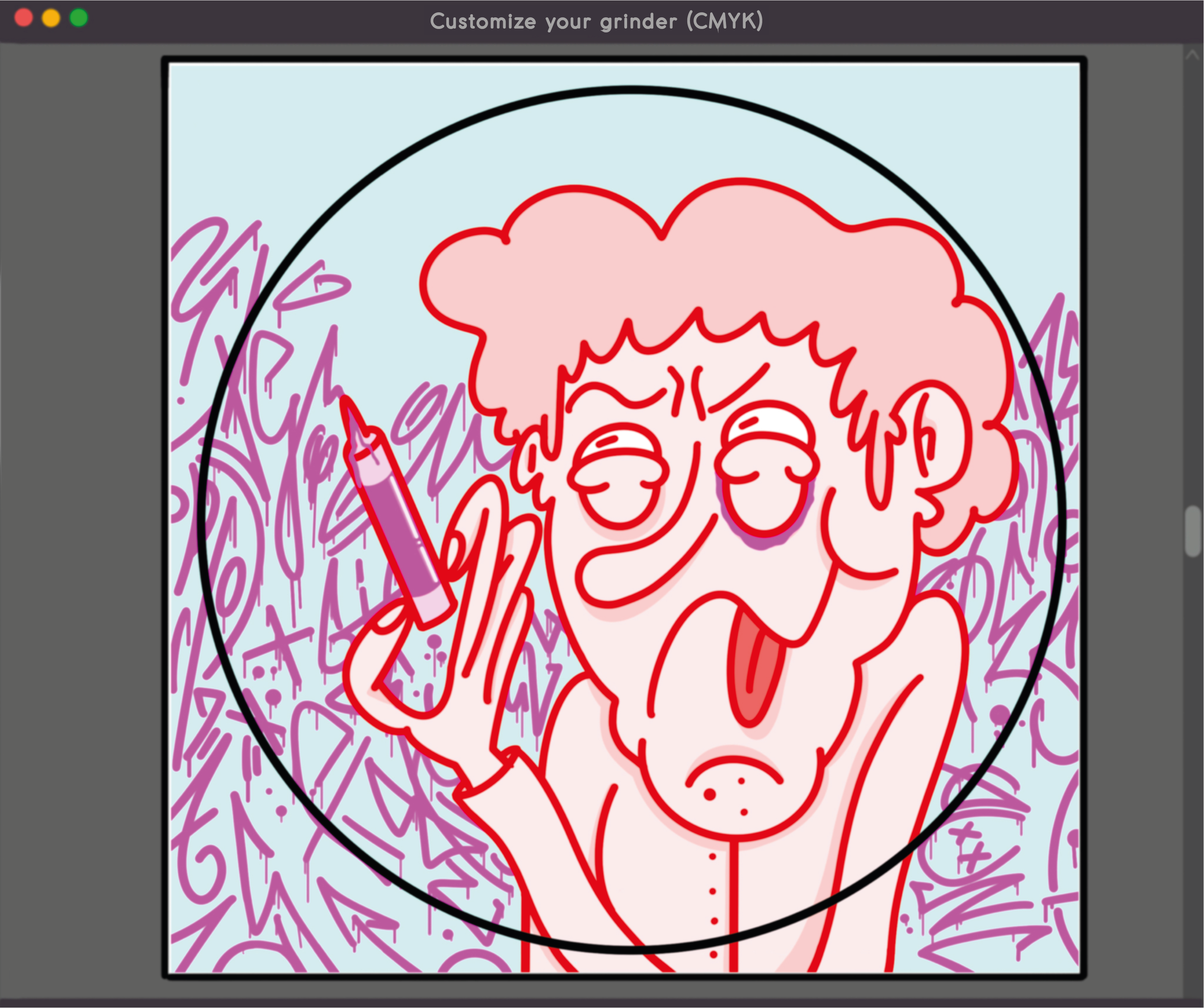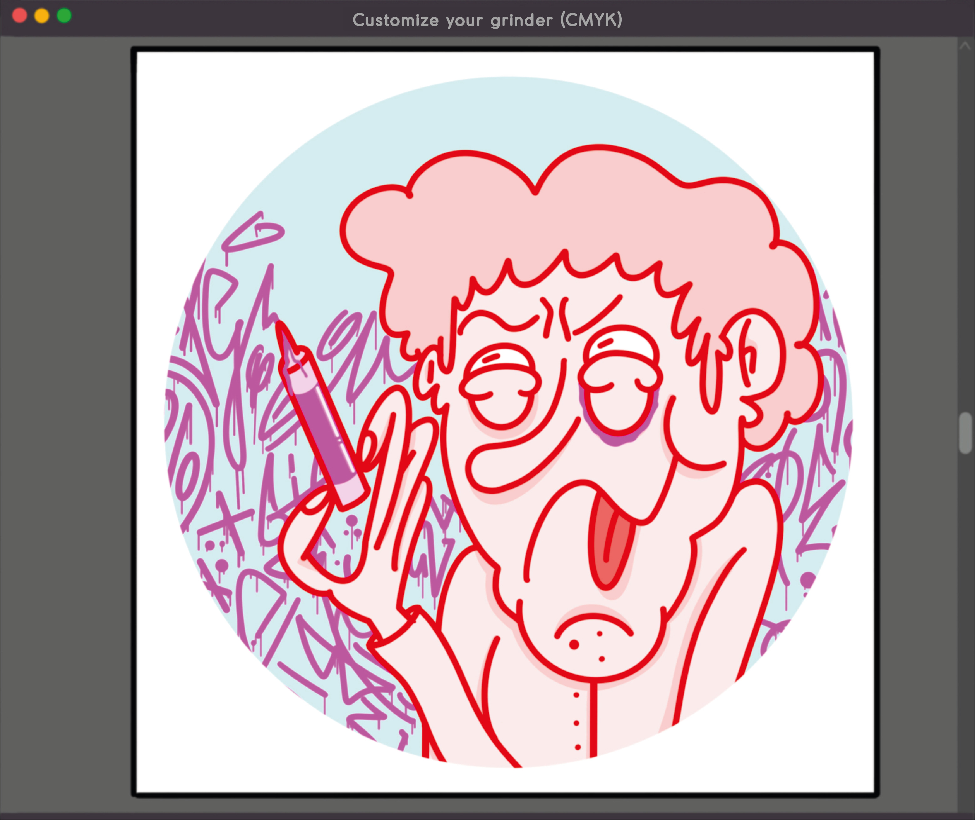 II. Place your design in a graphics program and draw a circle around the area of the graphic that you want to appear on the grinder. The circle is needed to specify the exact portion of the design that will be printed on the grinder